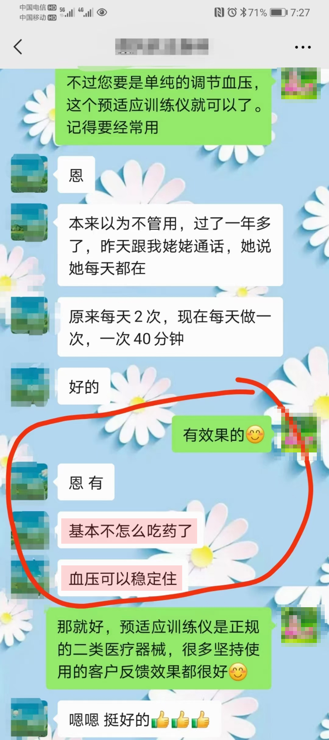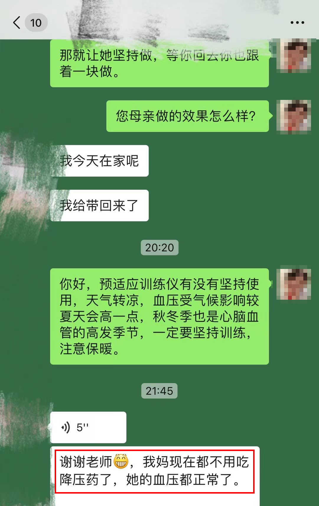 血壓恢復正常,頭暈的感覺消失了”
